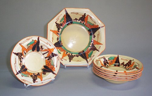 CLARICE CLIFF 'TREES & HOUSE' DESSERT SET