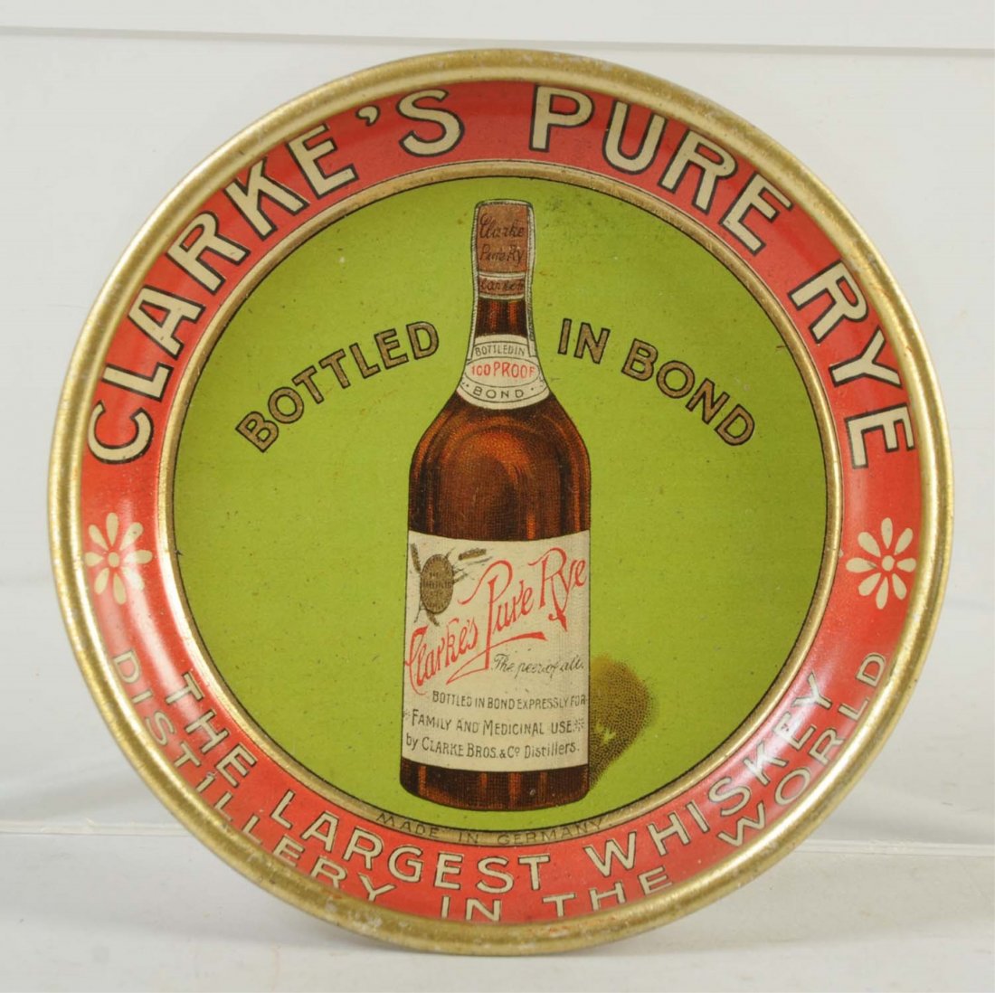Clarke's Pure Rye Whiskey Tip Tray.