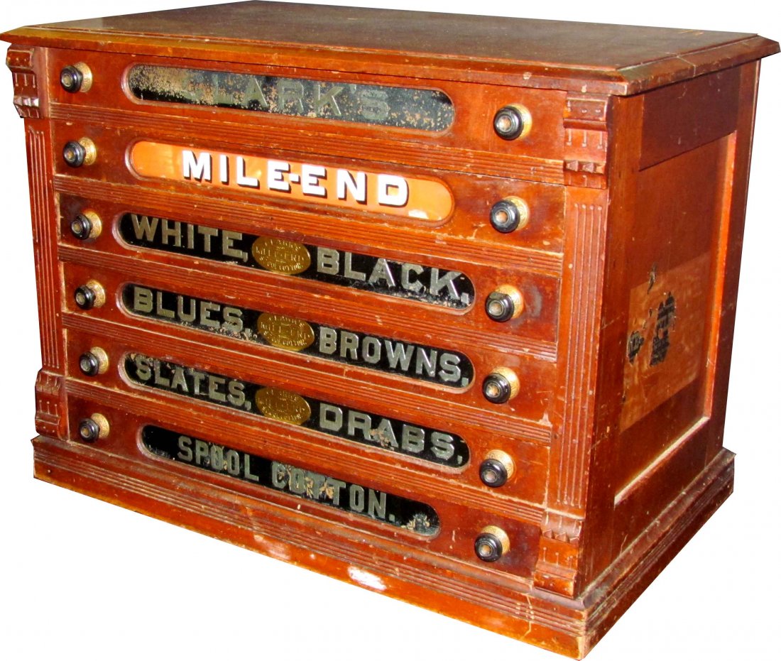 Clarks Spool Cabinet O.N.T. Sole Agent George A. ClarkMar 21, 2026Antique J. & P. Coats Oak Four Drawer Spool Cabinet with ContentsFeb 26, 2026The Frank Tea And Spice Co. 5 Drawer Wood Spice CabinetMar 21, 2026Wood 3 Drawer Jewelry Chest490 Lots AwayAmerican Quarter-Sawn Oak Map ChestFeb 27, 2026COLLECTION OF 3: COUNTRY STORE DISPLAY CASES21 hrs LeftChadwick's Spool Cotton Wood Display Cabinet CaseMar 21, 2026Grain painted lift top blanket chest, dovetailed with overset hinges, poplar boards, unfooted,6 days LeftAntique Polyphon Disc Music Box with Illustrated Lid Interior5 days LeftJ. P. Coats Thread CabinetMar 14, 2026Paint decorated Pennsylvania lift top blanket chest, dovetailed, painted floral panels, early lock6 days LeftStar Threads 5-drawer spool cabinetMar 28, 2026Pennsylvania Blanket Chest, old red paint on poplar, brass fittings, dovetailed, on Chippendale6 days LeftOak Ice Box with Porcelain LinerMar 07, 2026Revolving Hardware General Store Nut And Bolt Wood Cabinet On BaseMar 21, 2026Federal slant front desk on 4 drawer case, dovetailed, pull out writing surface, brass hardware,6 days Left