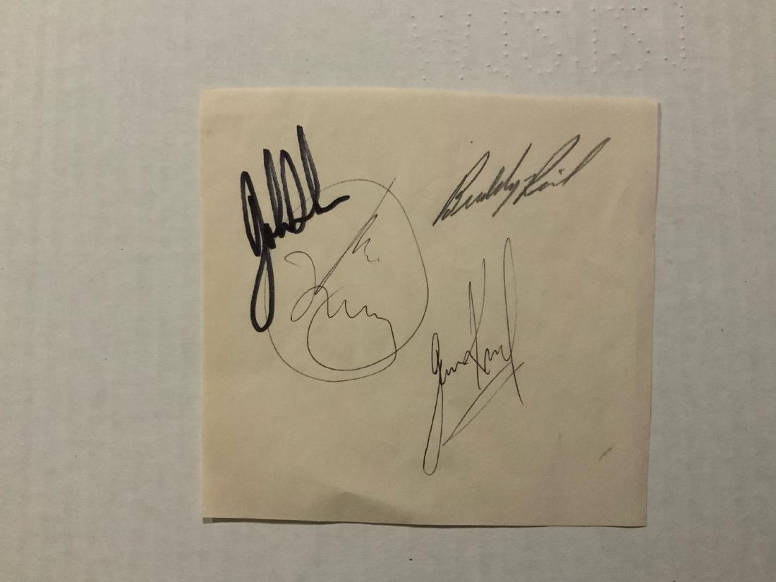 John Lennon Signed Composition Page with Original Drawing, Forensically Authenticated3 days LeftGreen Day Signed Cut SheetJul 20, 2025U2 Signed Card InlayJul 20, 2025Pete Townshend And Zak Starkey Signed Sheet MusicJul 20, 2025U2 Signed Sheet MusicJul 20, 2025Foreigner Band Autographed Index Card Lou Gramm Mick Jones Beckett AuthenticatedFeb 21, 2026Jimi Hendrix Experience AutographFeb 15, 20262004 Boston Red Sox Signed Pitching Rubber 8 Signatures PSA AuthenticatedFeb 16, 2026Vintage Dual Signed Album Page Jon Bon Jovi Tico Torres 1985 BeckettFeb 17, 2026WWII German Luftwaffe Aces Galland Rall Krupinski Spate Schuck Signed Book PlateMar 07, 2026Foreigner Band Autographed Index Card Lou Gramm Mick Jones BAS Certified33 mins LeftFRANK SINATRA LAWFORD MARTIN Plus 12 Signed Autograph Oceans 11 Cast JSA LOA1 day LeftElizabeth Taylor Signed Cut Signature JSA Authenticated Hollywood LegendFeb 18, 2026MICHAEL JACKSON Signed Autograph 5.5x7.5 Index Card JSA LOA1 day LeftJackie Robinson Pee Wee Reese Autographed Index Card 1940s Dodgers JSA3 days LeftNick Mason Autographed Cut Pink Floyd Beckett Certified 2.25 x 4Feb 19, 2026