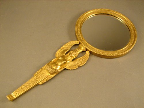 Classical Empire Antique Gilded Bronze Hand Mirror