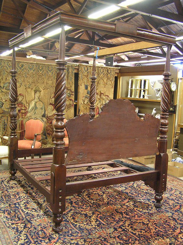 SoldMahogany Empire full tester plantation bedMahogany Empire full tester plantation bed with original tester, rails lock together, 8 ft. 8 in. T, 72 in. L, 59 in. W.See Sold Price