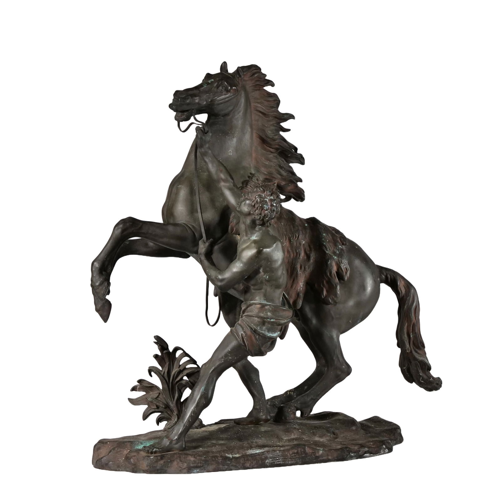 SoldAfter G. Coustou (French, 1677) 'Le Cheval De Marly" Bronze SculpturesDESCRIPTION: (2 Pc) After Guillaume Coustou (French, 1677) 'Le Cheval De Marly" Bronze Sculptures. This is a pair of classical bronze figures of "Marly Horse" groups after Guillaume Coustou (French, 1See Sold Price