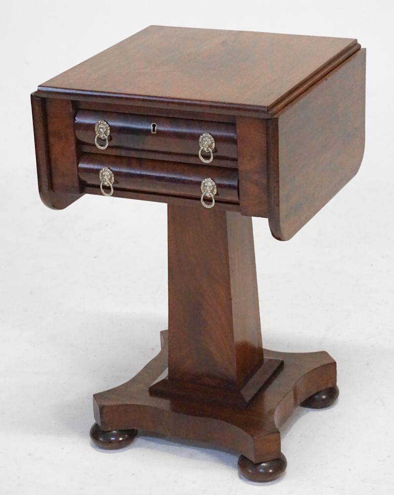 MAHOGANY BRONZE MOUNTED LEATHER TOP DIRECTOIRE STYLE THREE DRAWER WRITING DESK C 1940.Mar 24, 2026Y A REGENCY MAHOGANY SIDE OR DRESSING TABLE, ATTRIBUTED TO GILLOWS, CIRCA 1815Mar 24, 2026Y A REGENCY MAHOGANY 'CHAMBER' TABLE, IN THE MANNER OF GILLOWS, CIRCA 1815Mar 24, 2026A REGENCY MAHOGANY LIBRARY WRITING TABLE, CIRCA 1820Mar 24, 2026Victorian Mahogany Sewing Table14 hrs Left19th C. English Mahogany Pembroke Drop Leaf Side TableMar 28, 202619th C Mahogany Queen Anne Lowboy4 days LeftMid-19th Century Mahogany Drop Leaf Dining Table with Brass CastersMar 21, 2026Late 19th C. English Mahogany Pedestal Sideboard/ServerMar 28, 2026Mahogany and Satinwood English Desk with Inlay circa 18305 days LeftA Federal Mahogany Card Table, Probably Pennsylvania, c. 18105 days Left19TH C. ENGLISH MAHOGANY WRITING TABLE2 days LeftNINETEENTH CENTURY MAHOGANY DROP LEAF TABLE WITH DUNCAN PHYFE BASE.Mar 24, 2026Antique Neoclassical Carved Flame Mahogany Drop Leaf Table c1880Mar 18, 2026George III Mahogany Flip-top Table, England, 19th century,Sheraton Style Mahogany Drop Leaf Table, 19th C.Mar 26, 2026