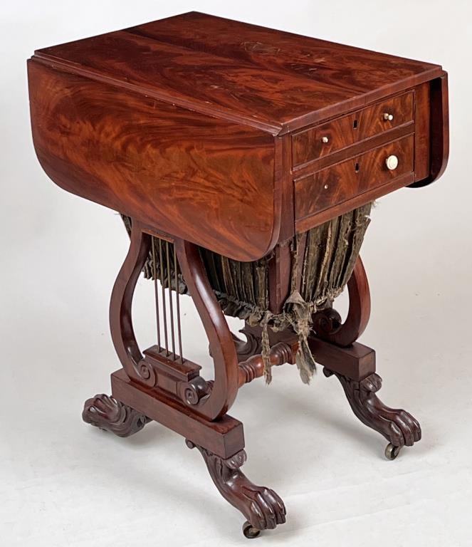 Classical Mahogany Lyre Base D/L Work Table