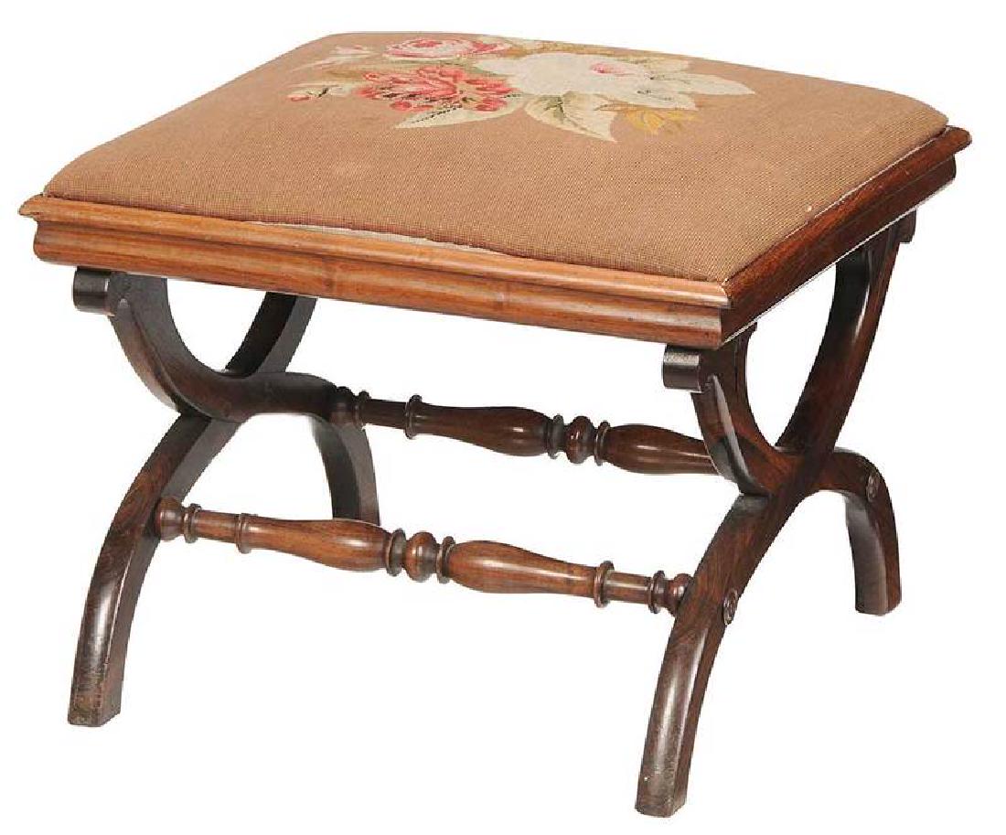 Classical Rosewood and Needlepoint Stool