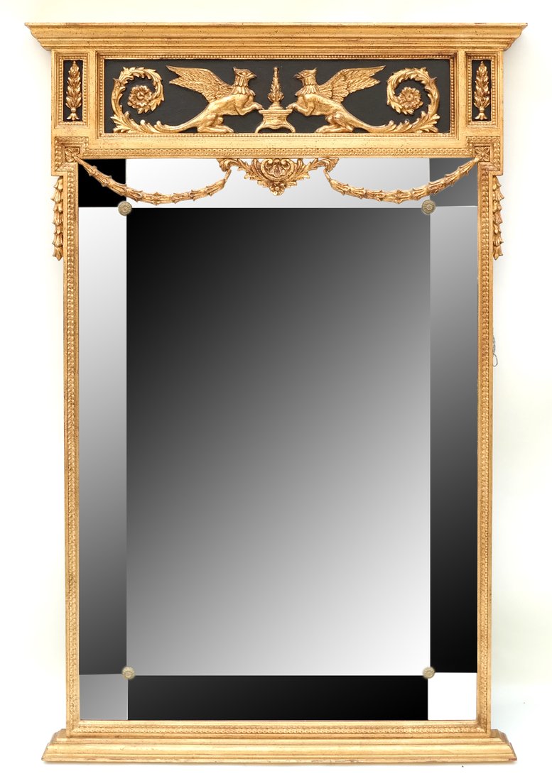 SoldFrench Neo Classical Style Gilt Mirror Center UrnFrench Neo Classical Style Gilt Beveled Glass Mirror with Center Urn and Swag Motif. 50 inches x 31 inchesSee Sold Price