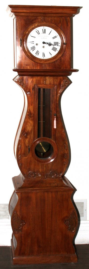 CLAUDE MAYET A MORBIER WALNUT TALL CASE CLOCK