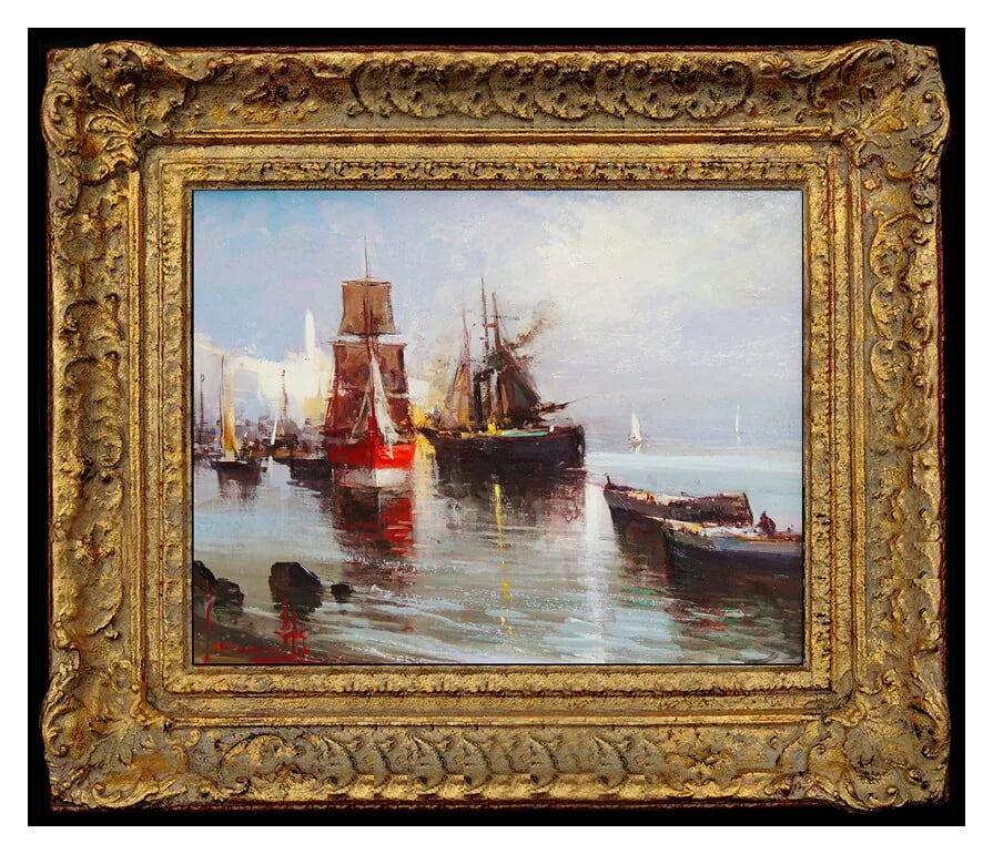 SoldGeorges Damin Original Painting Oil On Canvas Harbor Nautical Signed Framed ArtThis lot includes:Gallery COA & free domestic shipping (*insurance and international shipping for an additional charge)Artist: Georges Damin Title: Fishing Port Medium: Oil On CanvasSize: 6” x 1See Sold Price