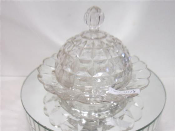 Clear glass covered butter dish