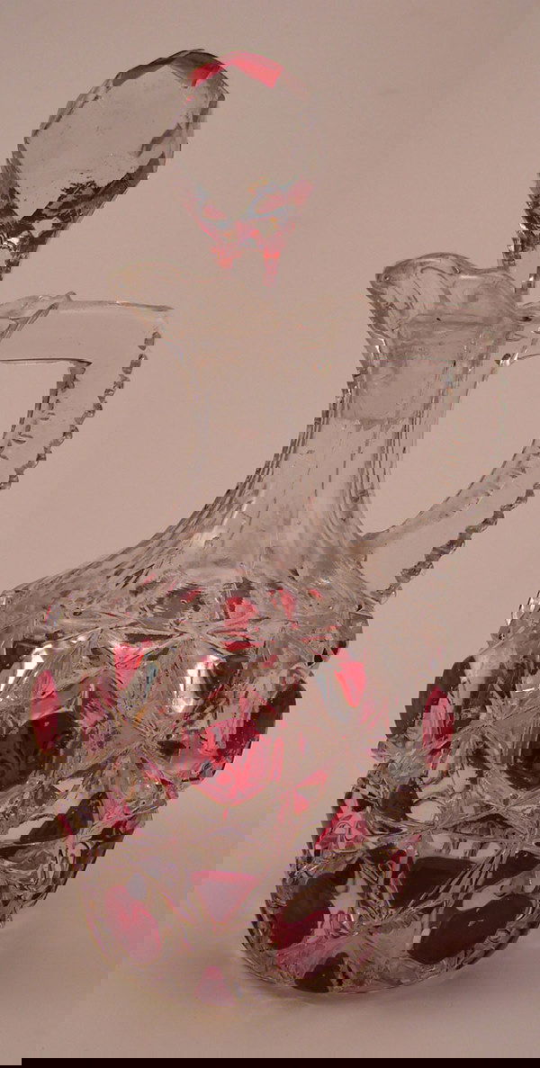 Clear Glass Cruet with ruby flash decoration. 7"