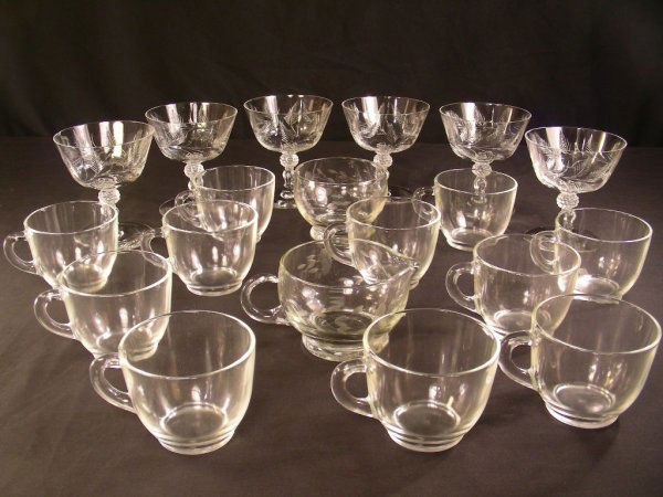 CLEAR GLASS PUNCH CUPS, STEMWARE 19 pcs