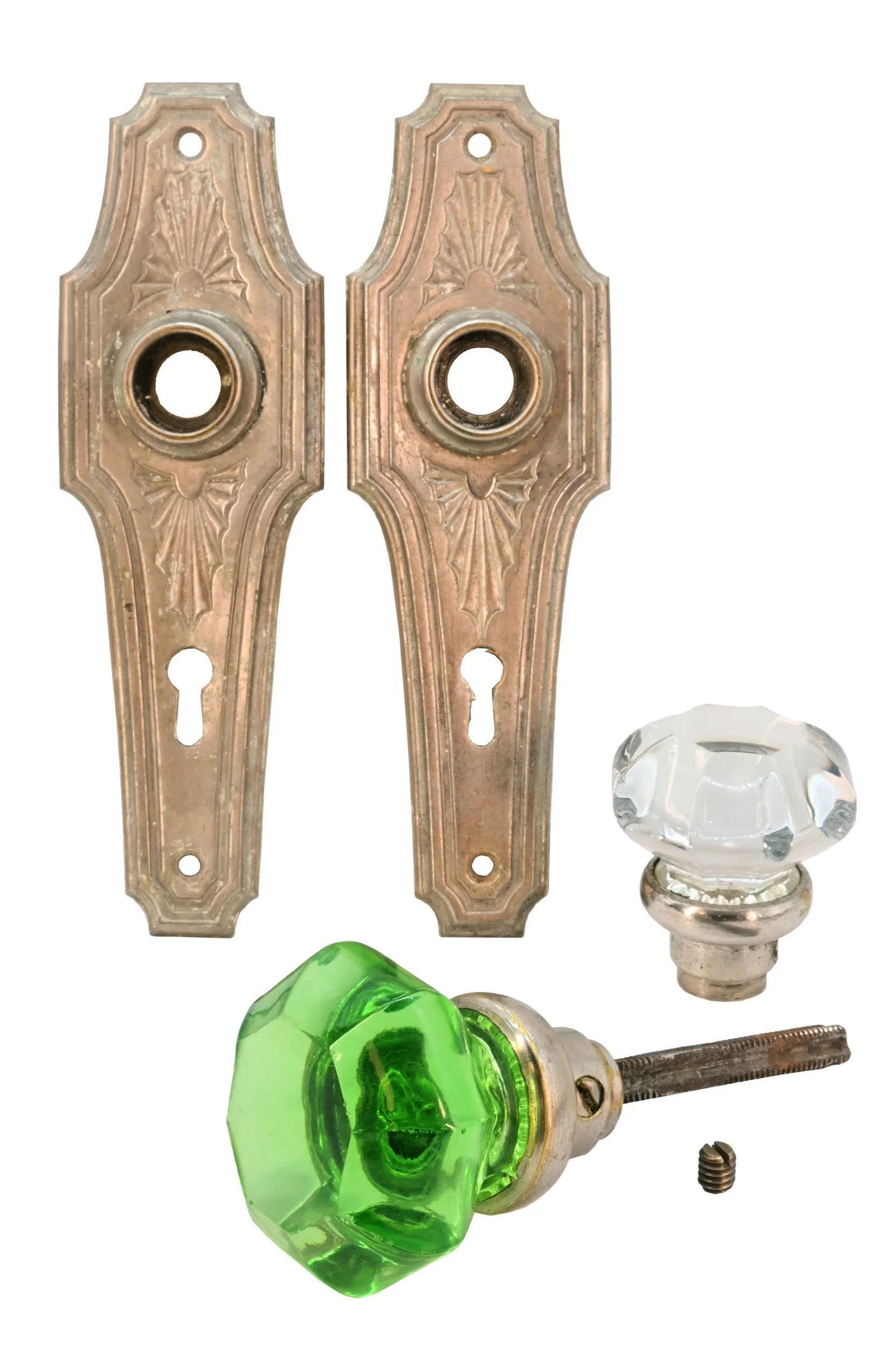 Clear and green glass knob and deco plate set