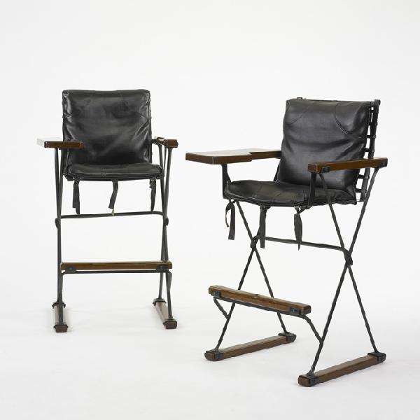 Cleo Baldon Pepe leather Iron Stool. Modernist design features iron, wood dowels and leather cushionCleo Baldon Pepe leather Iron Stool. Modernist design features iron, wood dowels and leather cushions. Dimensions: Height: 34 inches, Width: 18 inches, Depth: 22 inches. - Seat Height: 24 inches --- -