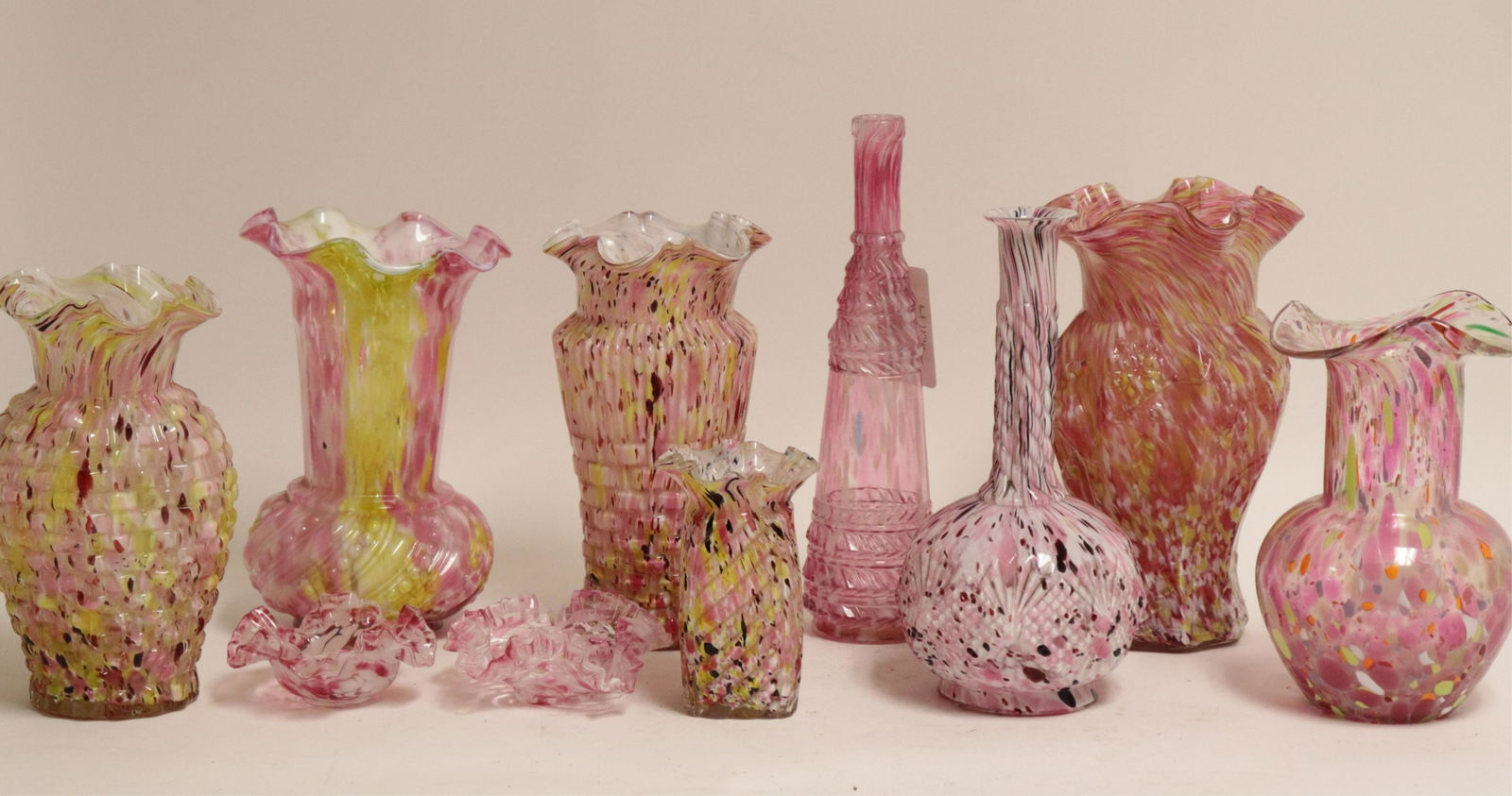 10 Clichy Mottled Glass Vases & Bowls, 1930