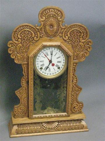 Clock, Gingerbread Type, Pressed Oak, 8 Day Time