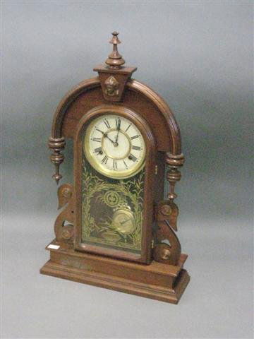 Clock, Parlor, Mantel Type, Walnut, Drop Finials,