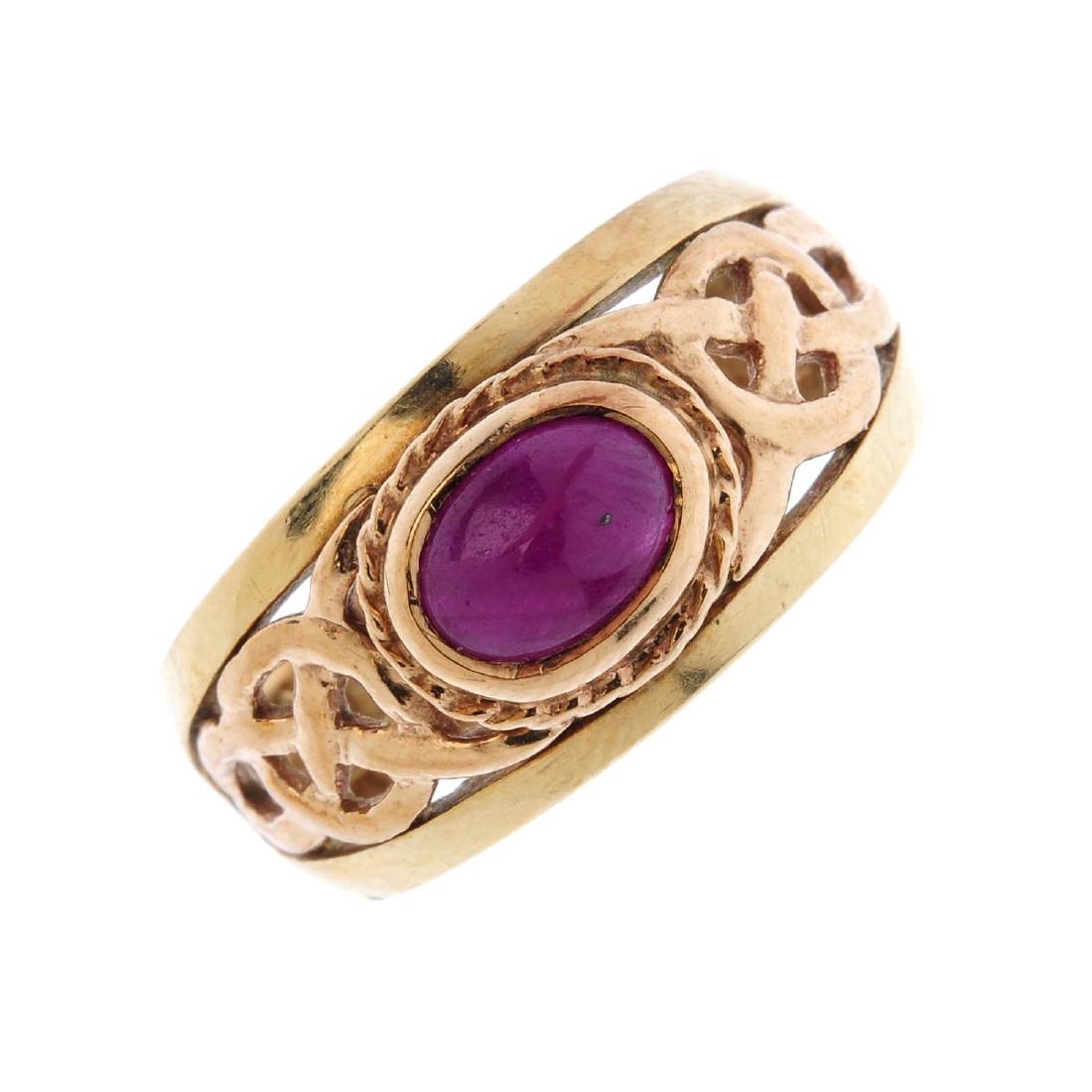 CLOGAU - a 9ct gold ruby dress ring. The oval ruby