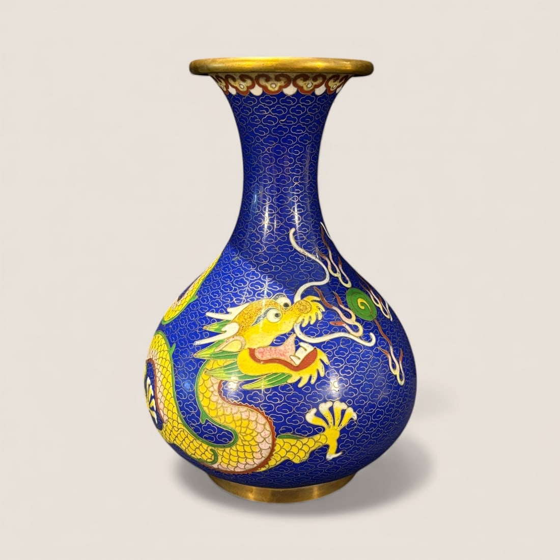 Cloisonne Dragon Vase With Blue Background