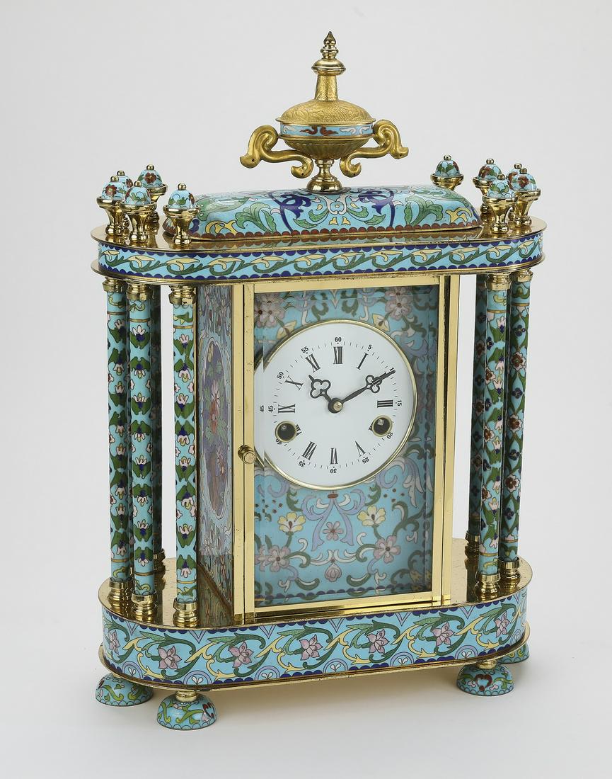 Cloissone mantel clock, 18"h