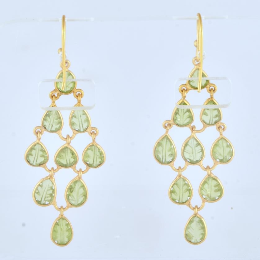 Cluster-shaped earrings with leaf-shaped peridots.