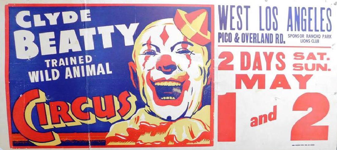 CLYDE BEATTY CIRCUS LARGE WINDOW CARD