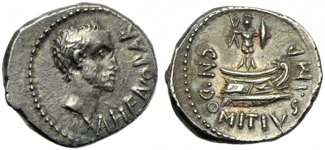 Cn. Domitius L.f. Ahenobarbus, Denarius, Mint moving