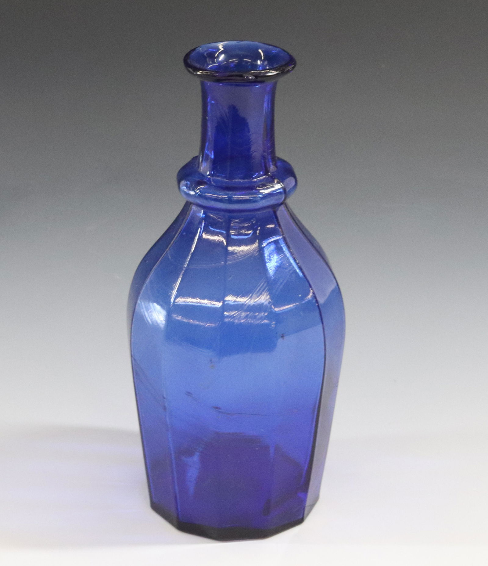 COBALT BLOWN IN MOLD PANELED BOTTLE