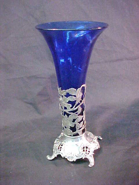 COBALT BLUE CRYSTAL VASE 800 SILVER BASE