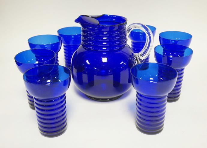 COBALT BLUE DEPRESSION 9 PIECE WATER SET