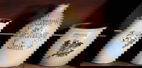 Lot of 3 Stoneware Crocks and Jug5 days LeftStoneware Crock Lot Inc. 1 Gal Handled Crock w/ Lid, 2K Aleppo Penn. Decorated Crock and IND. CrockMar 02, 2026Lot of 3 Assorted Stoneware Whiskey Jugs all w/ Original Cork or StopperMar 02, 2026PRIMITIVE TERRA COTTA SHEPHERDS GOURD / WATER VESSELS LOT OF 2Feb 28, 2026Primitive Earthenware Pottery3 days LeftTwo Antique Earthenware Vessels, One Incised "APK"Feb 27, 2026Five 19th Century Pennsylvania Stoneware Crocks and JugMar 01, 2026Farmville, VA Cobalt-Decorated Lithia Water Stoneware JugMar 01, 2026An Antique Cobalt Decorated Crock and A Salt-Glazed CrockMar 01, 2026Piedmont NC Pottery Jugs ca. 18605 days LeftStoneware Advertising Jug, stamped James Ryan, Pittston PA. Advertising H&W, W. Barre, PA. 11"HFeb 24, 202619TH CENTURY RIEDINGER CAIRE POUGHKEEPSIE,NY STONEWARE WHISKEY JUG 2 GALLONStoneware Advertising JugsFeb 24, 2026STONEWARE PITCHER AND JUG, WHITE'S UTICAFeb 26, 2026JAS. HAMILTON & CO. (GREENSBORO, PENNSYLVANIA) COBALT-DECORATED STONEWARE TWO-GALLON JAR.3 days LeftNew England Pottery Jug Group ca. 18705 days Left