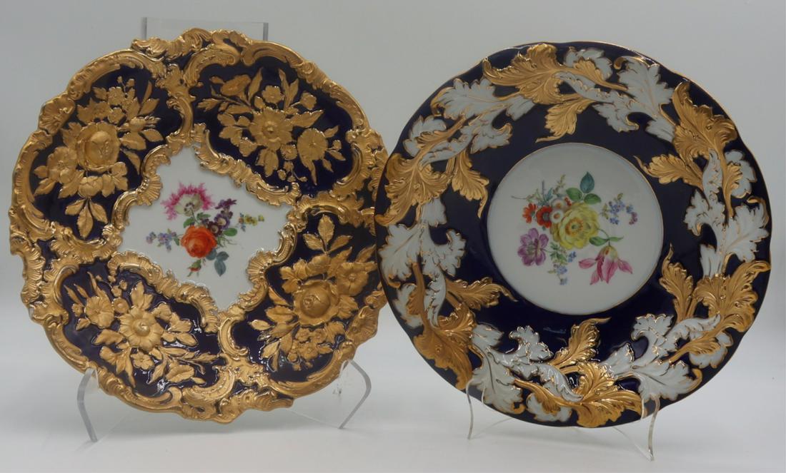 (2) Meissen Gilt & Floral Decorated Cobalt Plates.