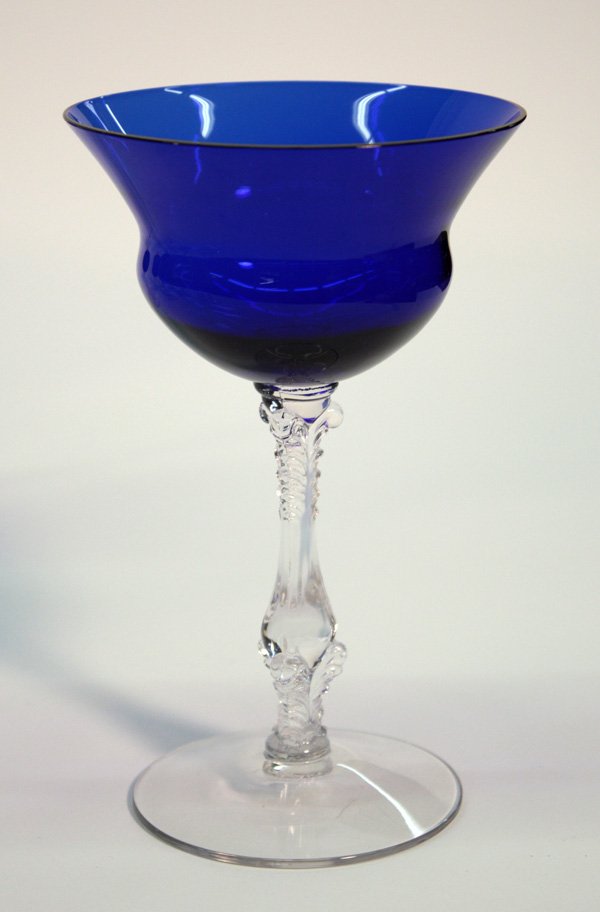 SoldCristal D'Arques Pavane Cobalt Cut to Clear StemwareCristal D'Arques "Pavane" pattern cobalt cut to clear stemware, to include: (12) water glasses, 7 3/4"; (12) wines, 7"; (12) champagne flutes, 8 3/4"; (12) cordials, 5"; (12) old fashioned, 3"; plus (See Sold Price