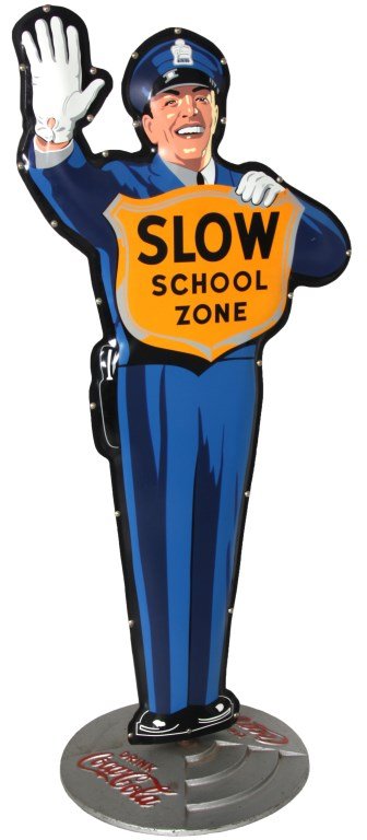 (2) Drink Pepsi-Cola Bottle Cap & Tin Signs LotMar 14, 2026Stop School Police Handheld DST SignMar 20, 2026Santa Cruz Taxi Zone Double-Sided Metal SignMar 14, 2026Pepsi-Cola Keystone Cops DS Counter DisplayMar 14, 2026Slow Children Playing Embossed Metal Street SignMar 23, 2026SLOW Double Sided Crossing Guard SignMar 21, 2026Phillip Morris Bellhop Cigarette Advertisement Standing Sign 42"Mar 14, 2026Mass D.P.W. Traffic Division Steel Sign MassachusettsMar 14, 2026Coca-Cola "Sign Of Good Taste" Porcelain Curb Sign W/ Original BaseMar 25, 2026Ford Service Die Cut Single Sided Porcelain Sign With Jubilee Crest LogoMar 20, 2026Please Drive To Last Pump Single-Sided Porcelain SignMar 14, 2026Bell Telephone Box SSP "Danger Keep Head and Limbs Inside of Door" SignMar 14, 2026Marathon Gasoline Always at Your Service SST Sign w/ AttendantMar 21, 2026Tiolene Motor Oil The Pure Oil Company DSP Curb Sign w/ ArrowMar 21, 2026We Recommend Icy-Flo Motor Oil Porcelain Curb Sign W/ Ice Sickle GraphicsMar 26, 2026Blackstone Cigar Single Sided Porcelain SignMar 21, 2026