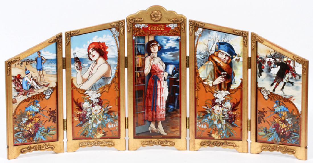 COCA COLA FIVE-PANEL STAINED GLASS TABLE SCREEN