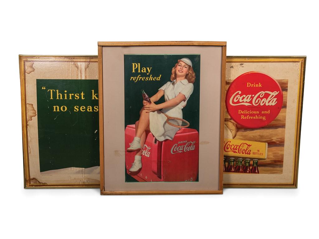 Coca Cola Collectibles LotMar 20, 2026ASSORTED COCA-COLA BEVERAGE EPHEMERA, UNCOUNTED LOTMar 05, 2026Coca-Cola Advertising Collection2 days LeftRoyal Crown Cola and Nehi SignMar 20, 2026Pepsi and Coca-Cola Wood Crates and Bottles5 days LeftEnjoy Frozen Coca Cola Fanta Ad and Things Go Better With Coke CardboardMar 20, 2026Vintage Style Coca Cola Bottles Sign1 hr LeftCoca-Cola Wire-Framed PostersMar 08, 2026Coca-Cola "Now For A Coke" Framed Cardboard PosterMar 08, 2026Drink Coca Cola "The Pause that Refreshes" Cardboard Sign w/ Wooden FrameMar 20, 20261950 Serve Coca Cola Double Sided CardboardMar 20, 2026Coca Cola Know Your State Tree Festoon DisplayMar 20, 2026Group of 4 Framed Vintage Advertising Prints – Car4 days LeftCoca Cola popcorn, candy and hot dogs framed retro style advertising signJul 01, 20254 pc COCA COLA COLLECTIBLES TRAYS - JACKET - ICE TUB5 days LeftDrink Coca Cola signMar 28, 2026