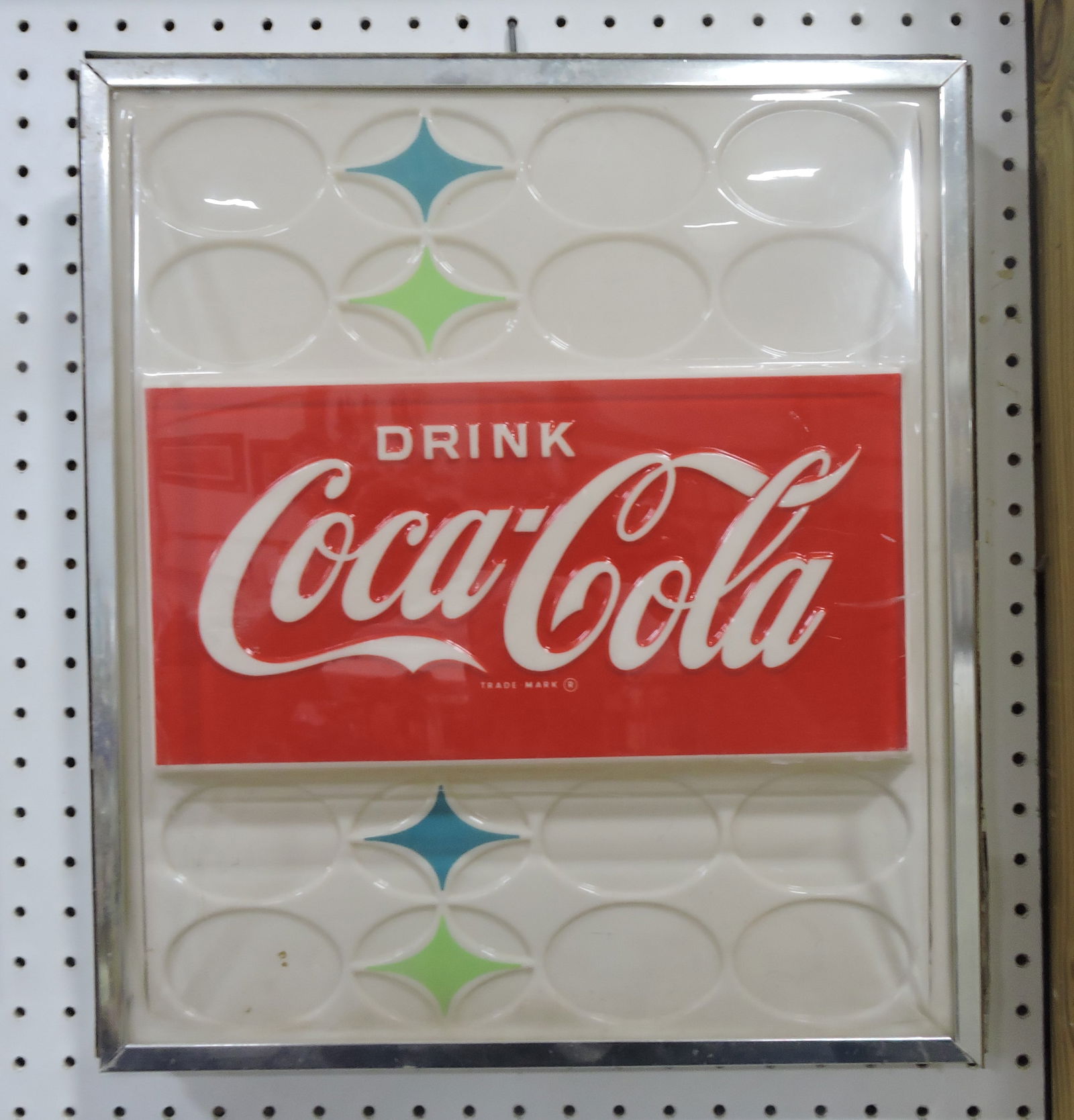Coca Cola plastic sign, 19"x17"