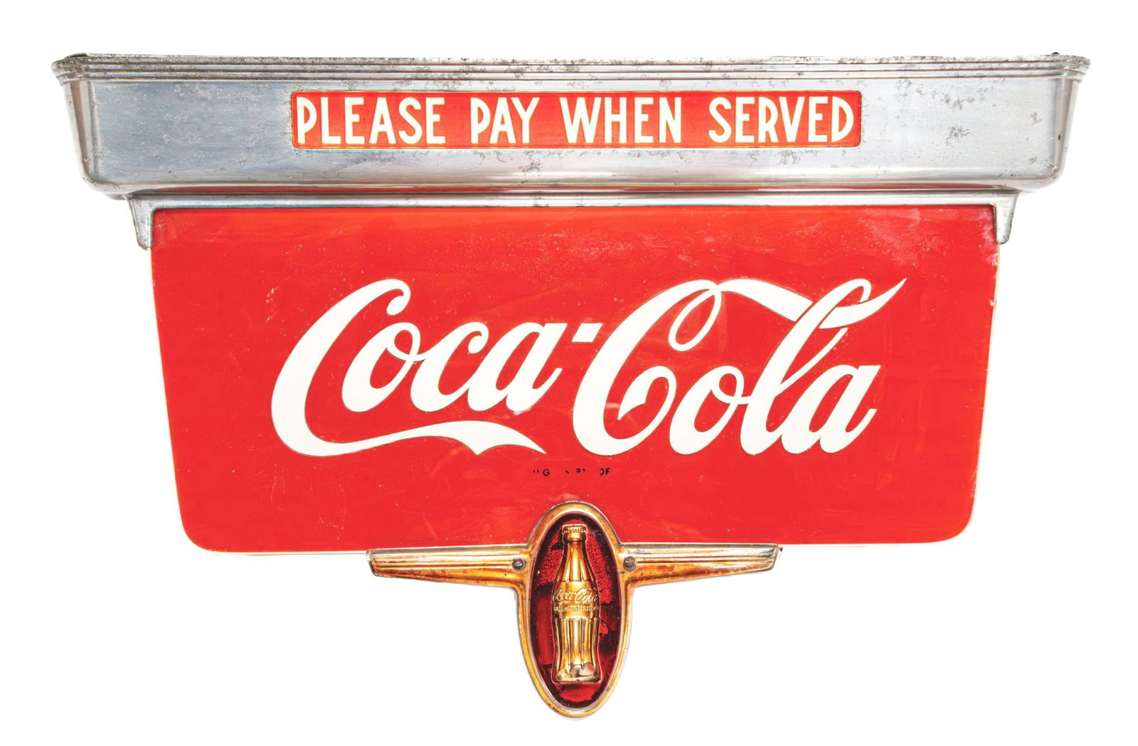 COCA-COLA "PLEASE PAY WHEN SERVED" HANGING LIGHT-UP SIGN