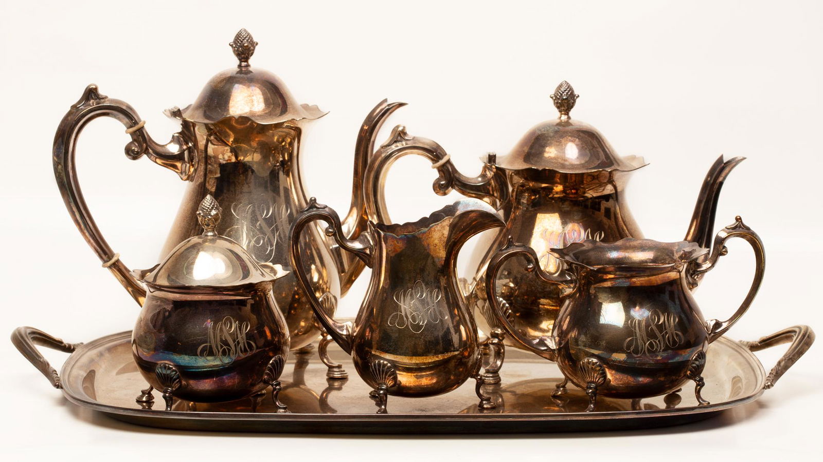 ASSORTED SIGNED PEWTER TABLE ARTICLES, LOT OF SIXMar 06, 2026ENGLISH SILVER LUSTRE CERAMIC TEA AND COFFEE ARTICLES, LOT OF SIXMar 04, 2026William Hunter 1842 Sterling Teapot Set of Three5 days LeftGorham Sterling 5 Pc. Coffee and Tea SetMar 10, 20265 Pieces Preisner Sterling Silver Tea Set with a Large Oval English Sterling Silver Tray5 days LeftFive-Piece Silverplate Tea and Coffee Service with Large Serving TrayMar 07, 2026Five-Piece Silverplate Tea and Coffee Service in the “King Francis" Pattern with TrayMar 07, 2026Rococo Style Silver Plate Coffee And Tea Set (7-piece), C. Mid-late 20th Century3 days LeftCOLLECTION OF SILVERPLATEMar 06, 2026Four Piece Kirk Sterling Tea Service with Tray3 days Left5 Pc Silverplated Tea SetMar 04, 20266PC STERLING TEA SERVICE, INTERNATIONAL, 133 TOWMar 07, 2026Reed & Barton Baroque Silverplate Coffee Service4 days LeftJames Dixon & Sons Silver Plate Coffee Service, 5Mar 07, 2026Watson sterling silver 3-piece tea set. Classical urn form with square bases. Monogrammed. Teapot6 days LeftAmerican Sterling Silver Four-Piece Coffee ServiceMar 12, 2026