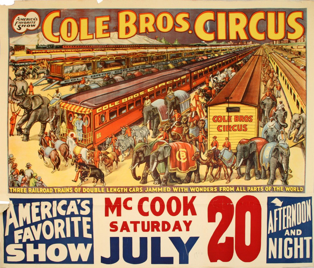COLE BROS. CIRCUS RAILROAD POSTER