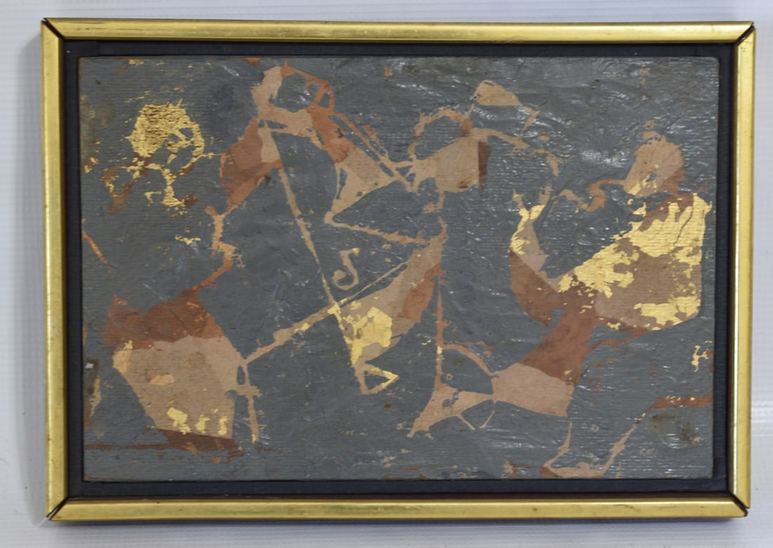 COLLAGE/PANEL "SCARLETT COLLAGE" SIGNED ILLEG., C. 1960