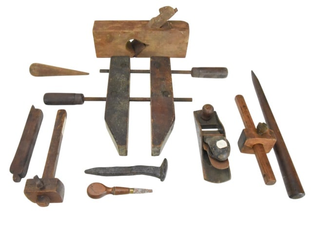 Collection Antique Carpentry Tools, Planes, Vices