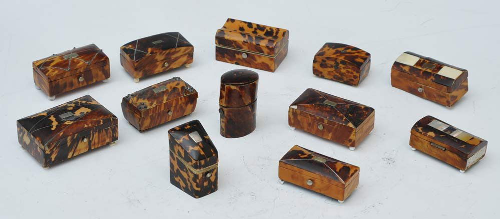 Collection of 12 Tortoise Shell Miniature Boxes