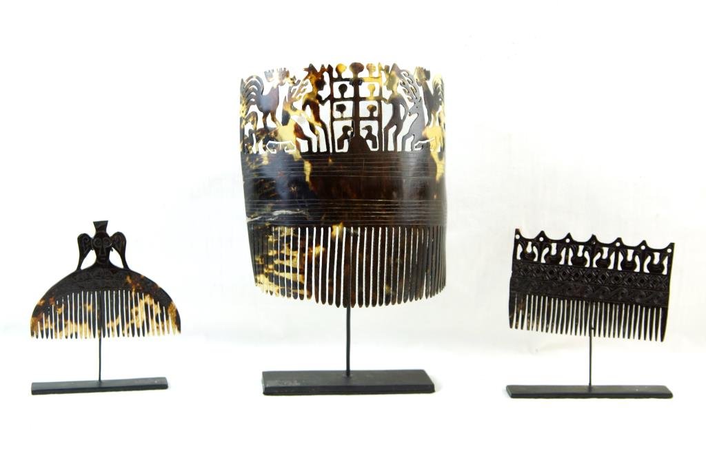Collection of 3 antique tortoise shell combs
