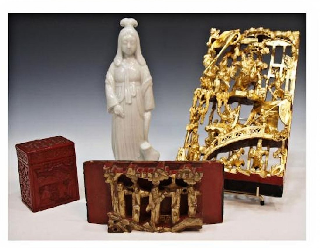 ASSORTED CHILDREN'S TOYS / ARTICLES, LOT OF SIX19 hrs LeftASSORTED ANTIQUE AND COLLECTIBLE ARTICLES, LOT OF TEN756 Lots AwayAsian Collection LotMar 28, 202614 Porcelain, Wood, Musical, Glass & Inlaid BoxesMar 12, 2026Grouping of Three Asian Figures (Two Wood, One Composite)3 days LeftA Chinese gilt-bronze Buddha, a Tibetan dorje bell and four various South Asian bronze wares,Mar 18, 2026Group of Three Chinese Decorative Objects (Soapstone Vessels & Table Screen)3 days LeftAssorted Decorative Items, 153 days LeftFour carved panels, China, Republic period around 1930,Mar 13, 2026An Exquisite Shoushan Stone Statue of Avalokitesvara Ornament745 Lots AwayChinese Kangxi Blanc De Chine Weiqi Figure GroupMar 15, 2026A Chinese Giltwood Carved Panel with Vases and Scholar’s Objects, Qing Dynasty3 days LeftA Rare Yellow Ground Famille-Rose Painted Gold Lotus and Eight Treasures Pattern Vase,With VerticalApr 04, 2026Chinese Late Qing Blanc De Chine Porcelain Bride & GroomMar 15, 2026GROUP OF ASSORTED ASIAN FIGURES2 days LeftChinese Dragon and Three Wise Buddhas Figurines (4)Mar 28, 2026