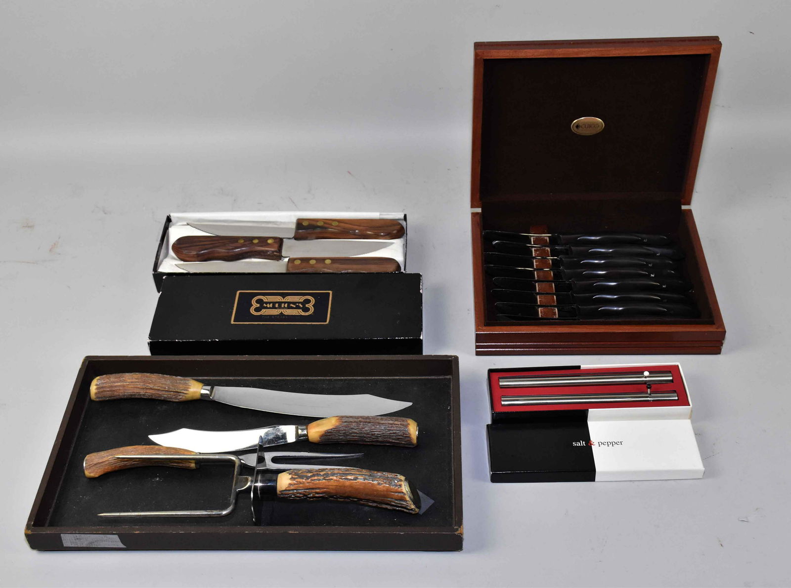 LOT OF 19: NOVELTY, FIGURAL MINIATURE KNIVES.Feb 25, 2026LOT OF 21: NOVELTY, MINIATURE, AND FIGURAL KNIVES.Feb 25, 2026LOT OF 5: LETTER OPENER KNIVES, QUEEN, DOLPHIN, PRESTO SWITCHBLADEFeb 25, 2026LOT OF 3: STAINLESS CUTLERY, RICHARD’S & CONOVER, WESTERN, POCKET KNIVES.Feb 25, 2026LOT OF 3: CHALLENGE AND FLYOCK TWO BLADE DOUBLE SWITCHBLADES.Feb 25, 2026LOT OF 5: VALLEY FORGE AND C.F. WOLFERTZ, POCKET KNIVES.Feb 25, 2026LOT OF 3: VICTORINOX SWITZERLAND SWISS CHAMP MULTI-BLADE SPORTSMAN KNIVES.Feb 25, 2026A composed lot of eight various antique French silver-plated CHRISTOFLE cutlery sets7 days LeftLOT OF 6: QUEEN, DAN BURKE, SCHATT & MORGAN, AND QUEEN CITY POCKET KNIVES.Feb 25, 2026LOT OF 4: CATTARAUGUS CUTLERY CO. POCKET KNIVES, LINER LOCK, PEARL, BARLOW, SENATOR ETCHEDFeb 25, 2026LOT OF 2: WILLIAM HENRY L20-PC1 SPECTRUM AND T10 TWIST FOLDING KNIVES.Feb 25, 2026LOT OF 4 GERMAN WESTER BROS., KRUSIUS, AND GLICO. WHITTLERS MULTI-BLADE KNIVES.Feb 25, 2026LOT OF 5: MULTI-TOOL, MILITARY POCKET KNIVES. ULSTER MOUNTAIN KNIFE, RUSSELL NAVY KNIFEFeb 25, 2026LOT OF 3: JAGUAR ROSTFREI ITALIAN MULTI-BLADE RING PULL SHOT SHELL PULLER HUNTER SWITCHBLADE,Feb 25, 2026LOT OF 5: FAYETTEVILLE KNIFE CO., MILLER BROS., WITTE’S PRIDE ETCHED, GW&H HDWE POCKET KNIVES.Feb 25, 2026LOT OF 5: MOTHER OF PEARL GUNSTOCK ORANGE BLOSSOM WHITTLERS, CAMILLUS, BOKER, DURO-EDGE, KENN KUTTERFeb 25, 2026