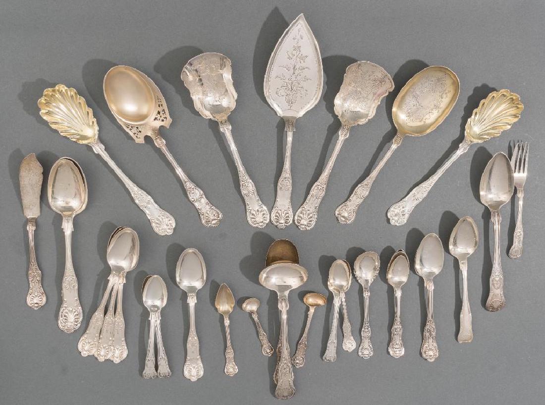Various Silverware Serving Set Silver Plated Flatware Lot of 20Apr 07, 2026(7) COLLECTION OF AMERICAN STERLING SILVER FLATWAREMar 29, 2026(12) STERLING SILVER FLATWARE & STRAINER, TIFFANY & CO., GORHAM & MOREMar 29, 2026(24) AMERICAN STERLING 'KINGS' FLATWARE, GORHAM AND SHREVE CRUMP & LOWMar 29, 202625 PCS. STERLING SILVER FLATWAREMar 22, 20265 PIECES ENGLISH FLATWAREMar 22, 2026Group of Sterling Silver Flatware PiecesMar 28, 2026830 SILVER NORWEGIAN FLATWARE SET2 days LeftAssembled Set of American Sterling Silver King's Pattern Flatware6 days LeftTiffany & Co. Sterling Silver "English King" Pattern Flatware Service3 days LeftGroup of Silver Plate Special Flatware PiecesMar 28, 2026Group of Sterling Silver FlatwareMar 25, 2026ASSORTED STERLING SILVER FLATWARE Mostly 20th Century Approx. 39.8 troy oz.Mar 25, 2026Thirty-Six Piece Group of American Sterling Flatware, 19th/20th c., App. Total Sterling Wt.- 24.28Mar 27, 2026A Group of Sterling Flatware by Various Makers Including Gorham and German7 days LeftInternational / Fine Arts "Processional" Sterling Silver Flatware Service for 10 With Extras5 days Left