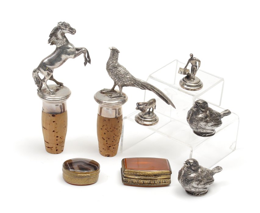 Large Group Lot of Unusual Silver Miniatures4 days LeftVintage Silver Tone Unsigned Grape Vine Teddy Bear Carousel Horse Brooch Pin Lot Of 413 hrs LeftLot of sterling silver dresser accessories, including various covered glass jars and scent bottles.Mar 01, 2026Lot of sterling silver accessories and tableware. To include: Chinese wise man figural shakers, O.Mar 01, 2026LOT OF VINTAGE MERCURY GLASS CHRISTMAS ORNAMENTSFeb 26, 2026LOT OF CAST IRON BANKS AND BOTTLE OPENERFeb 26, 2026ASSORTED ESTATE SILVER PLATED UTENSILS & TABLEWAREMar 07, 2026Sterling Silver Estate TablewaresFeb 24, 2026Collection of silver consisting of pepper and salt shakers, jugs, bell, bowl and statue of a boy,1 day LeftPewter and Sterling Serveware [202 grams]Feb 25, 20264 .800 Silver Miniature FiguresMar 14, 20264 salon or butler bells in bronze and metal, in the shape of a horse, deer, roe deer and ibex, circa1 day Left(3) Chinese silver figural polo trophies5 days LeftA Collection of Sterling, Silverplate and Copper Desk and Table Articles7 days Left4 Circa 1880's Sterling Silver Figural Wine Corks of Animals - Great DetailMar 01, 2026Nine Sterling Table ArticlesFeb 21, 2026