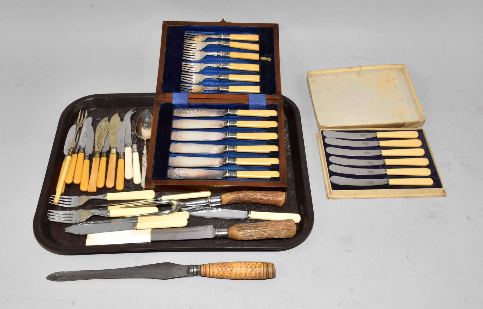COLLECTION OF STAG HANDLED AND BONE HANDLED SERVING