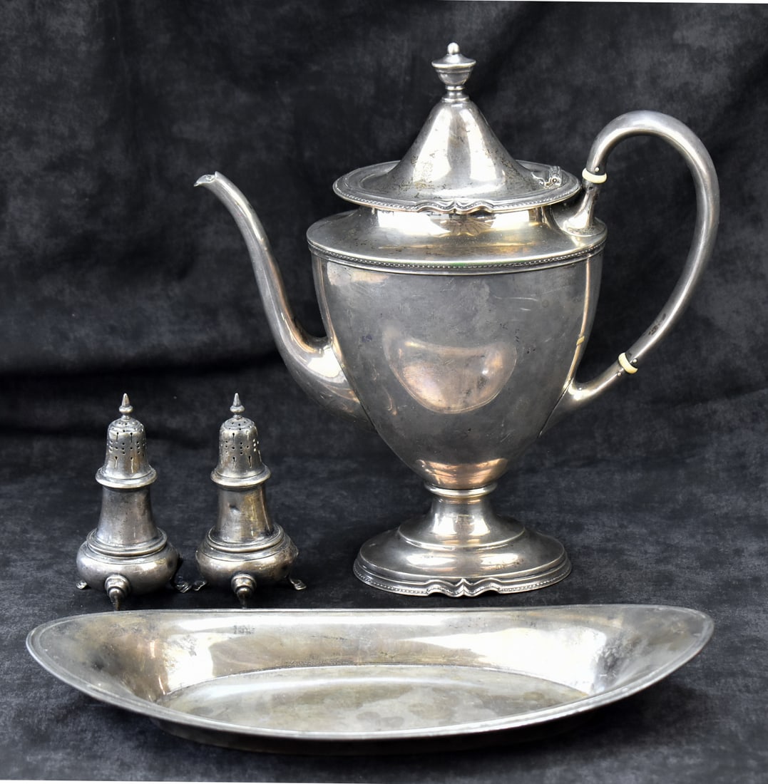 Lot of Mixed Silverplate and Sterling ItemsFeb 27, 2026(5) ENGLISH ELKINGTON & CO. STERLING SILVER TEA & COFFEE SERVICE3 days LeftPewter and Sterling Serveware [202 grams]7 days LeftVintage WM A Rogers Silverplated Tea Pot & Creamer6 days Left(4pc) GORHAM STERLING COFFEE SERVICE4 days LeftVery Fine Kirk Sterling Silver Repose Tea Pot With Cream Sugar & TrayFeb 28, 20265 Pieces Preisner Sterling Silver Tea Set with a Large Oval English Sterling Silver TrayFeb 28, 2026Godinger Mini Silver Plated 3 Piece Coffee Tea Set Teapot Creamer Sugar and Danny Wilson Tray Set2 days Left6PC STERLING TEA SERVICE, INTERNATIONAL, 133 TOWMar 07, 2026800 silver teapot and sugar bowlFeb 26, 2026A Silver Coffee ServiceMar 03, 2026Sterling Silver Baby Cup + Salt and Pepper H 4.2" 3 PCS12 hrs LeftAntique Gorham Sterling Silver 2 Pint Teapot #A9631Feb 28, 2026A Poole sterling silver 'Georgian' tea and coffee serviceMar 03, 2026ANTIQUE WATSON STERLING SILVER TEA POT4 days LeftSterling Silver Hollowware Assortment5 days Left